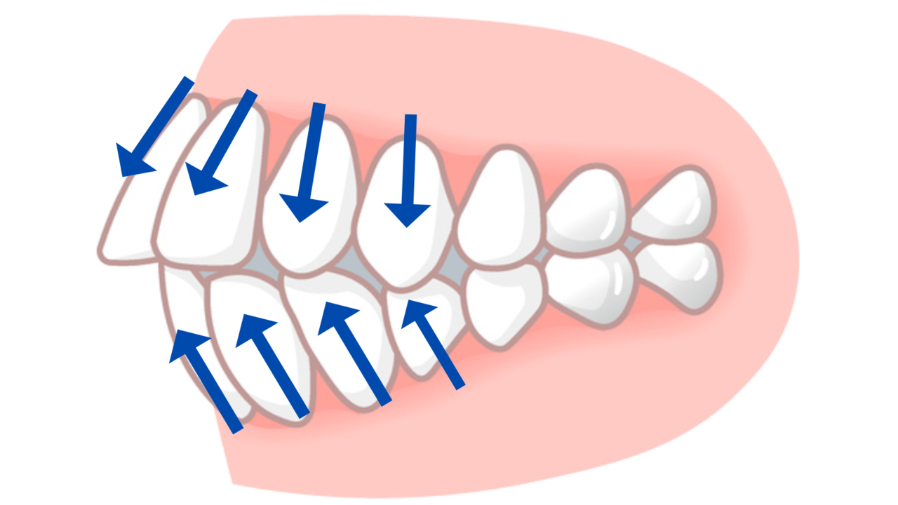 このようにスペースが足りない状態で矯正治療を進めると、前歯が外側に突出して口ゴボになりかねません。