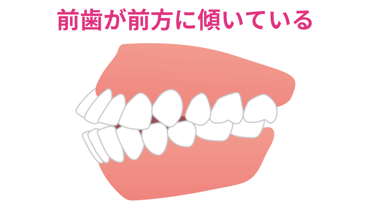 前歯を舌で押し出す癖がある人や、子供の頃に指しゃぶりの癖があった人は、前歯が外側に斜めに傾いてしまうことがあります。