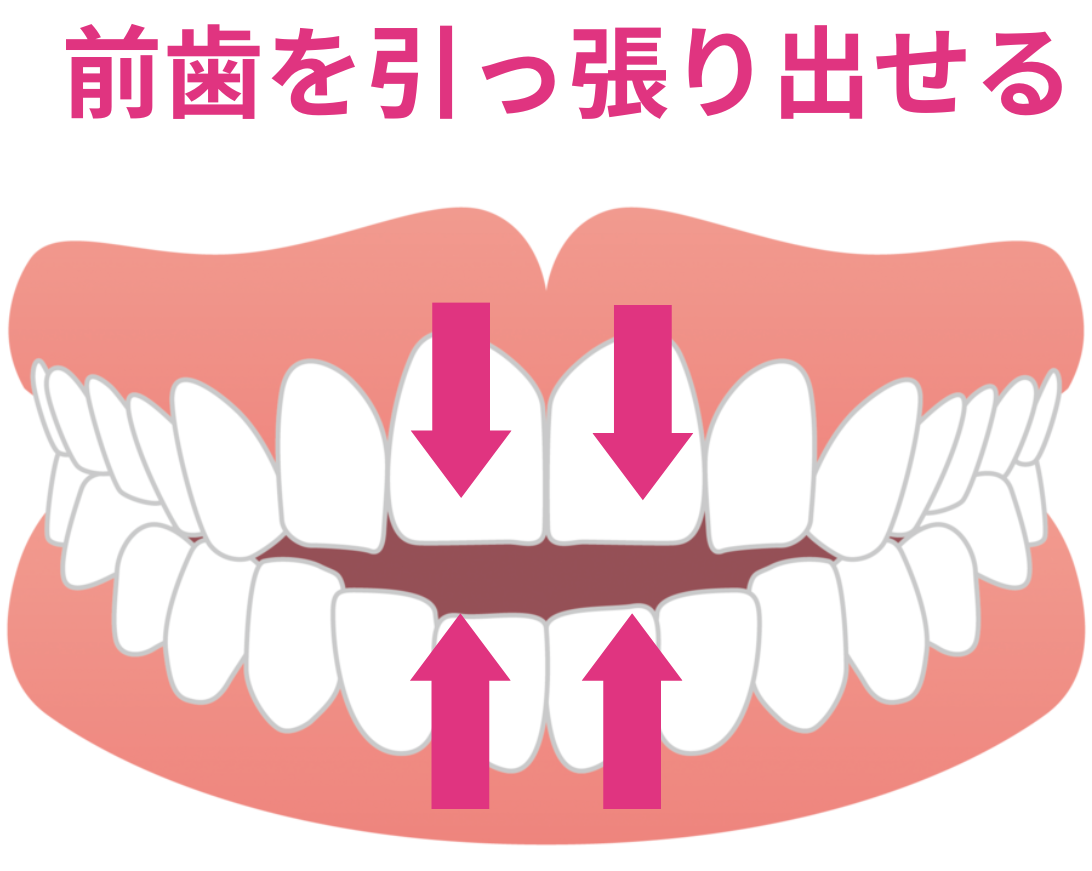 その点当院のインビザラインなら、上下の前歯を引っ張り出す(挺出)ことで、開咬の矯正が可能なのです。