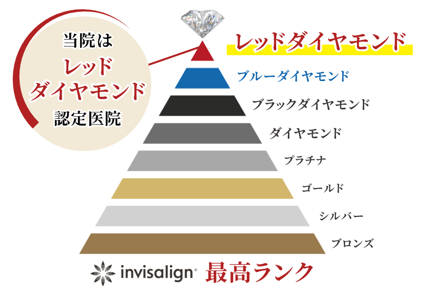 私は、「インビザライン・トッププロバイダーズ」に選ばれ、最高ランク「レッドダイヤモンド」に認定されております。