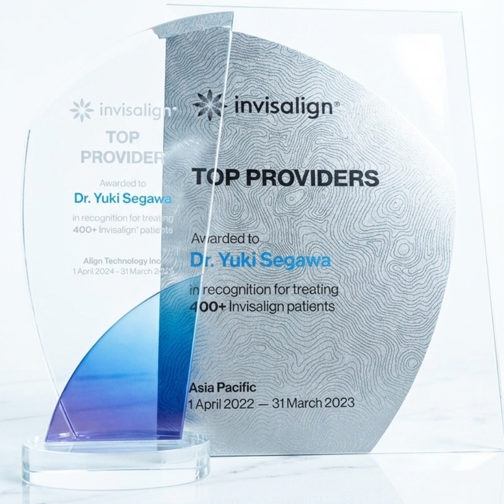 私は、国内の上位10人以内(現在は4名)、世界ではたった1%しかいない「インビザライン・トッププロバイダーズ」に選ばれ、最高ランク「レッドダイヤモンド」にも認定されています。