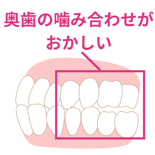 受け口では、前歯がずれているだけでなく奥歯もずれているため、噛み合わせがおかしくなっている患者さまが少なくありません。